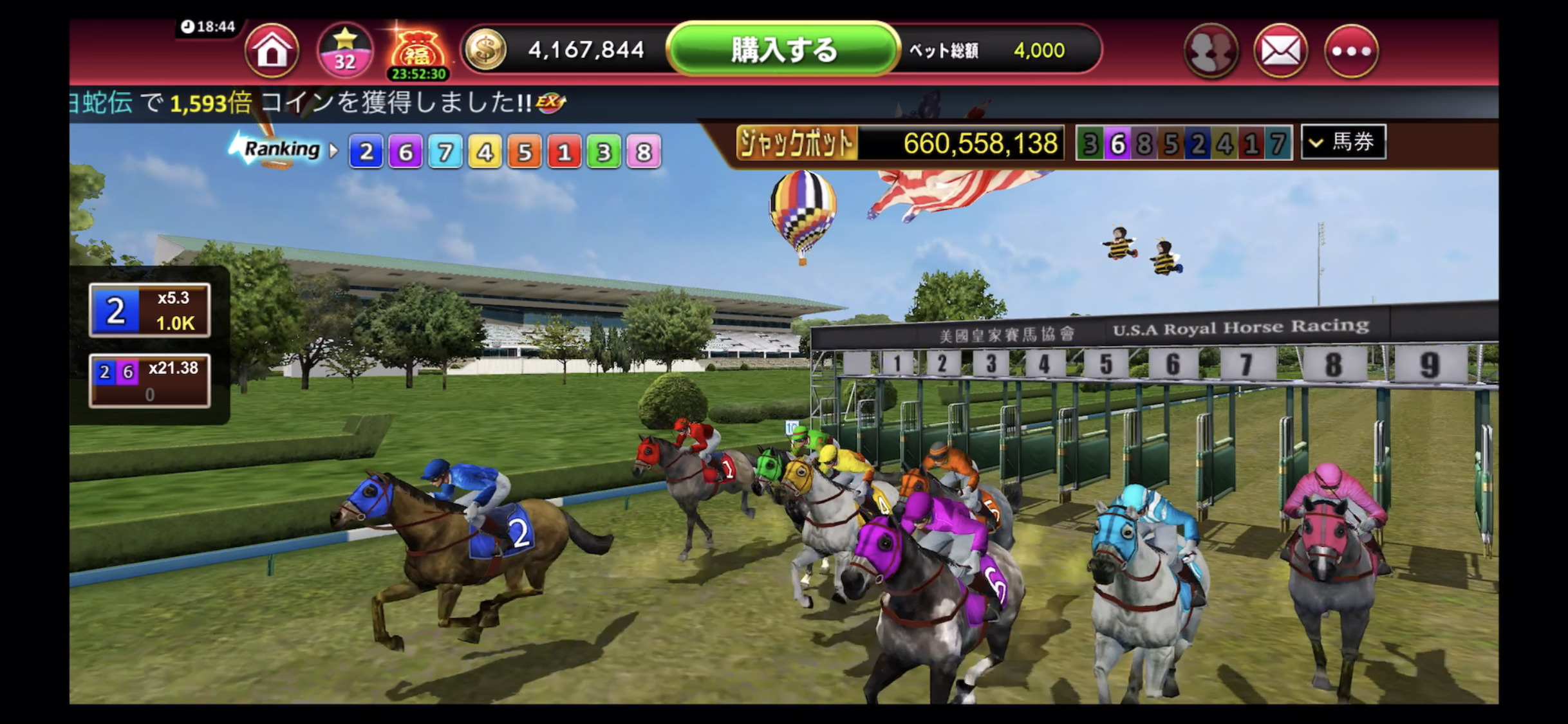 競馬は倍率の駆け引きが楽しみどころですが、馬の様子がいまいち伝わらないのがやや物足りなく感じましたが、概ね満足できる内容でした。