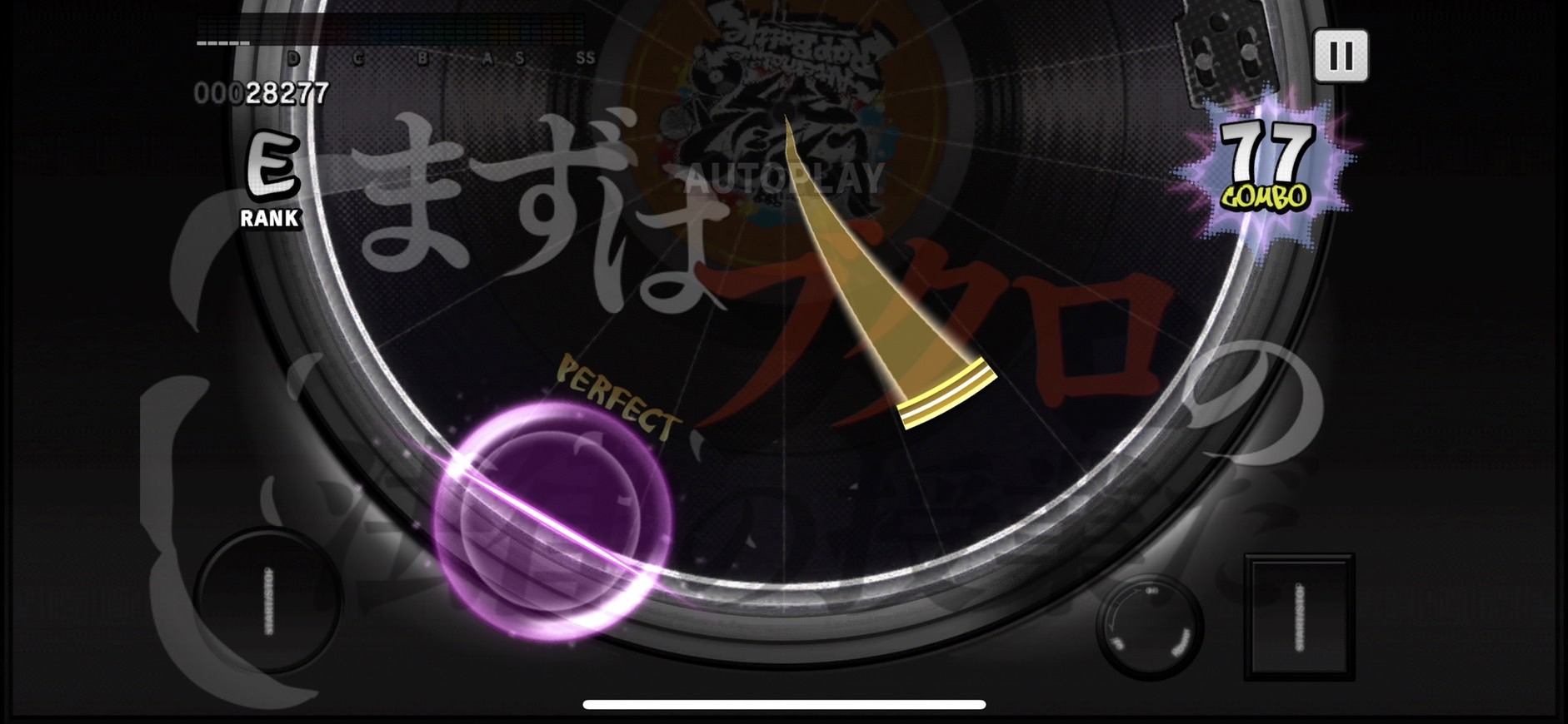 プレイ画面がターンテーブルになっており、スクラッチするとターンテーブル自体も回転してノーツが落ちてくる場所が変わります。