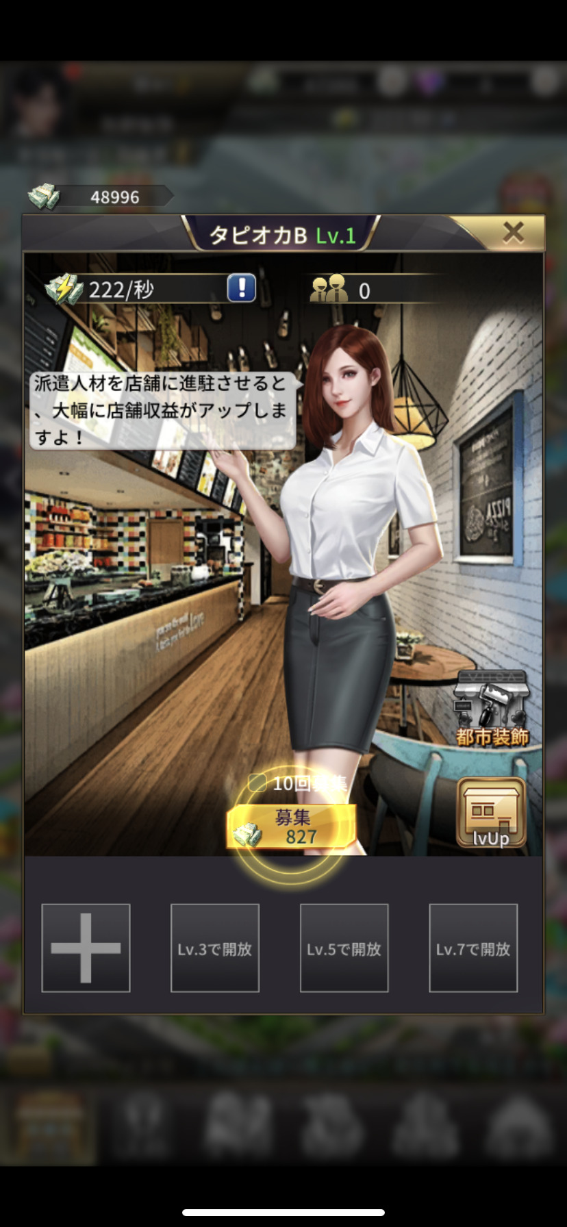 決められた店舗のアップグレードを行いながら資産を増やしていくといったシンプルなシステムなので、操作が簡単です。