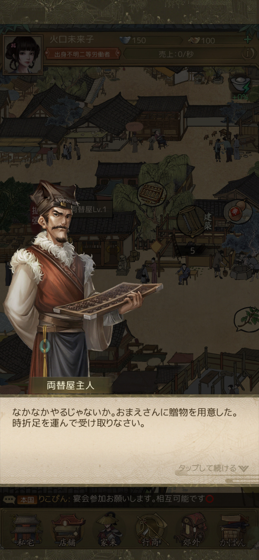 両替屋、旅籠屋、養成所の経営や、異国との貿易もできますよ。